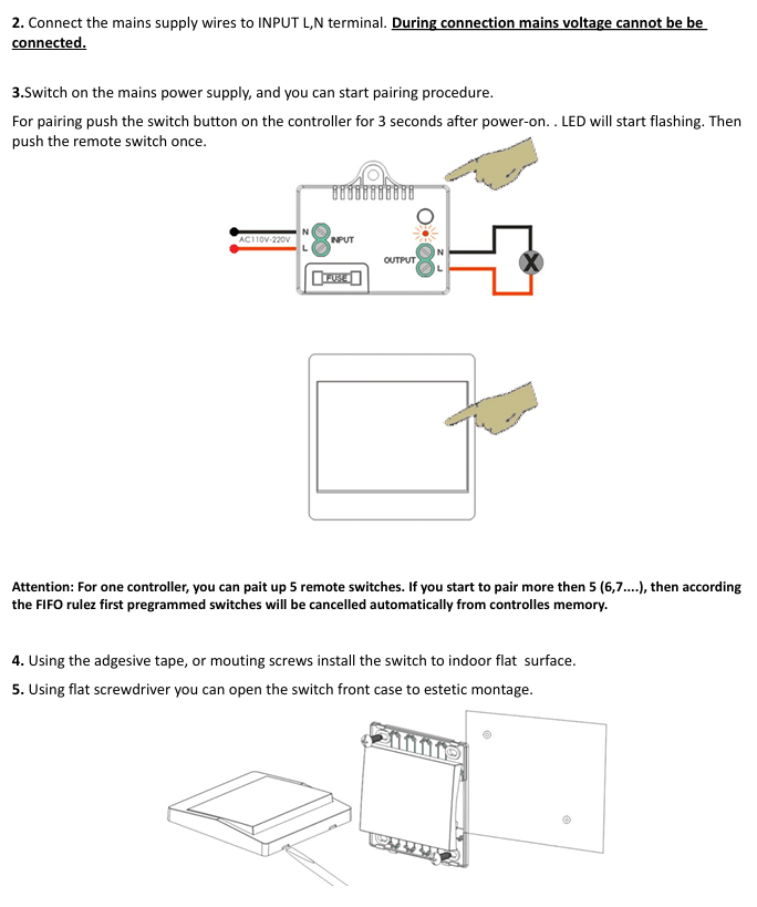 Bezdrôtové kinetické spínanie LUNA 230V 1 tlačidlo/ 1 prijímač